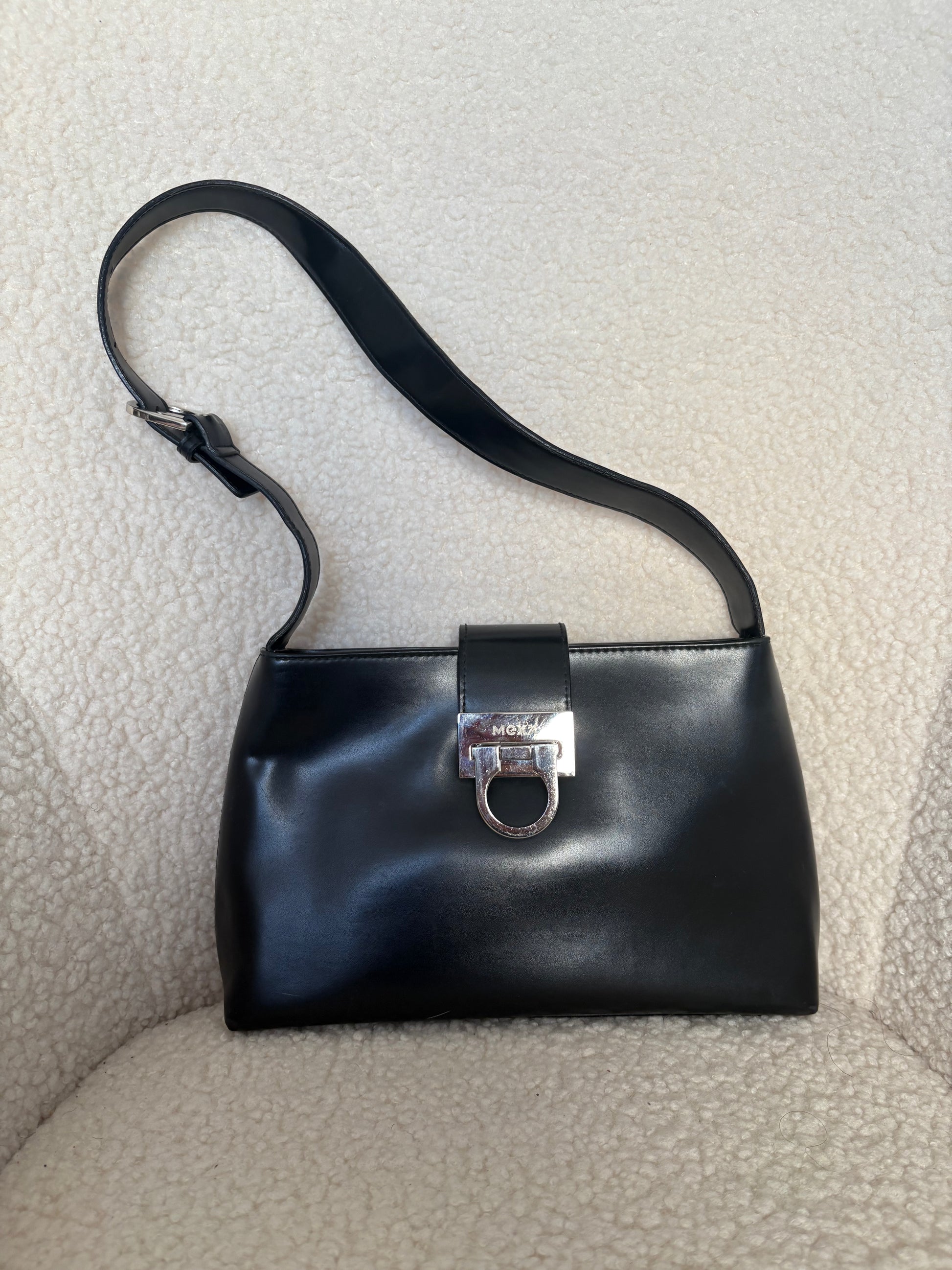 MEXX BLACK LEATHER SHOULDER BAG