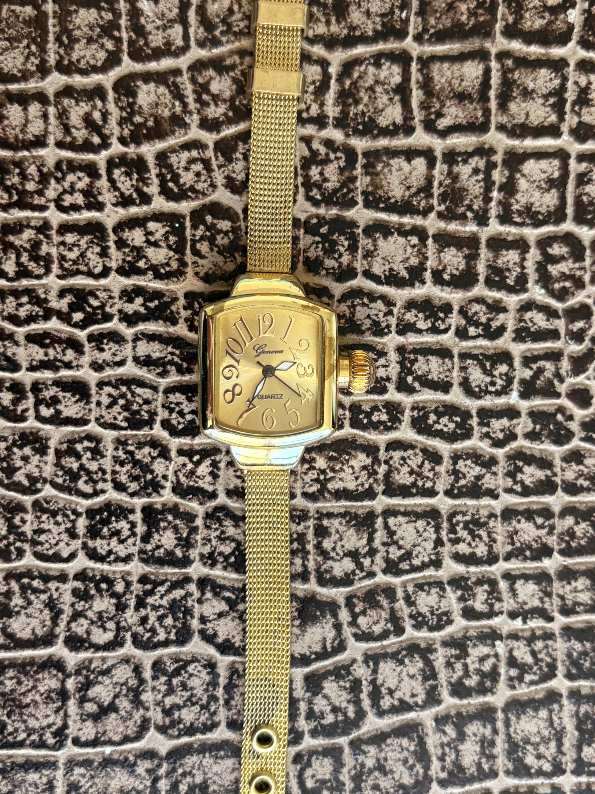 Timeless elegance meets classic craftsmanship with this vintage Geneva watch. Featuring a refined gold-tone case and precise movement, this timepiece captures the sophistication of yesteryear. The clean dial design and reliable mechanics make it a standout accessory for collectors and vintage enthusiasts alike. Perfect for adding vintage charm to any occasion, whether dressed up or down. A genuine piece of horological history that brings character and style to your wrist.